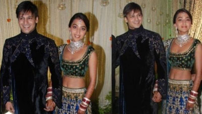 Vivek was dressed in dark velvet sherwani and Priyanka in a blue and green velvet lehenga; all-in-all they made a beautiful couple. Vivek Oberoi and Priyanka Alva were married in Bangalore at the Alva farm on Friday evening; their wedding was mostly a family affair with sources suggesting that only Saif Ali Khan, Kareena Kapoor and Sushmita Sen attended the wedding from B-town.